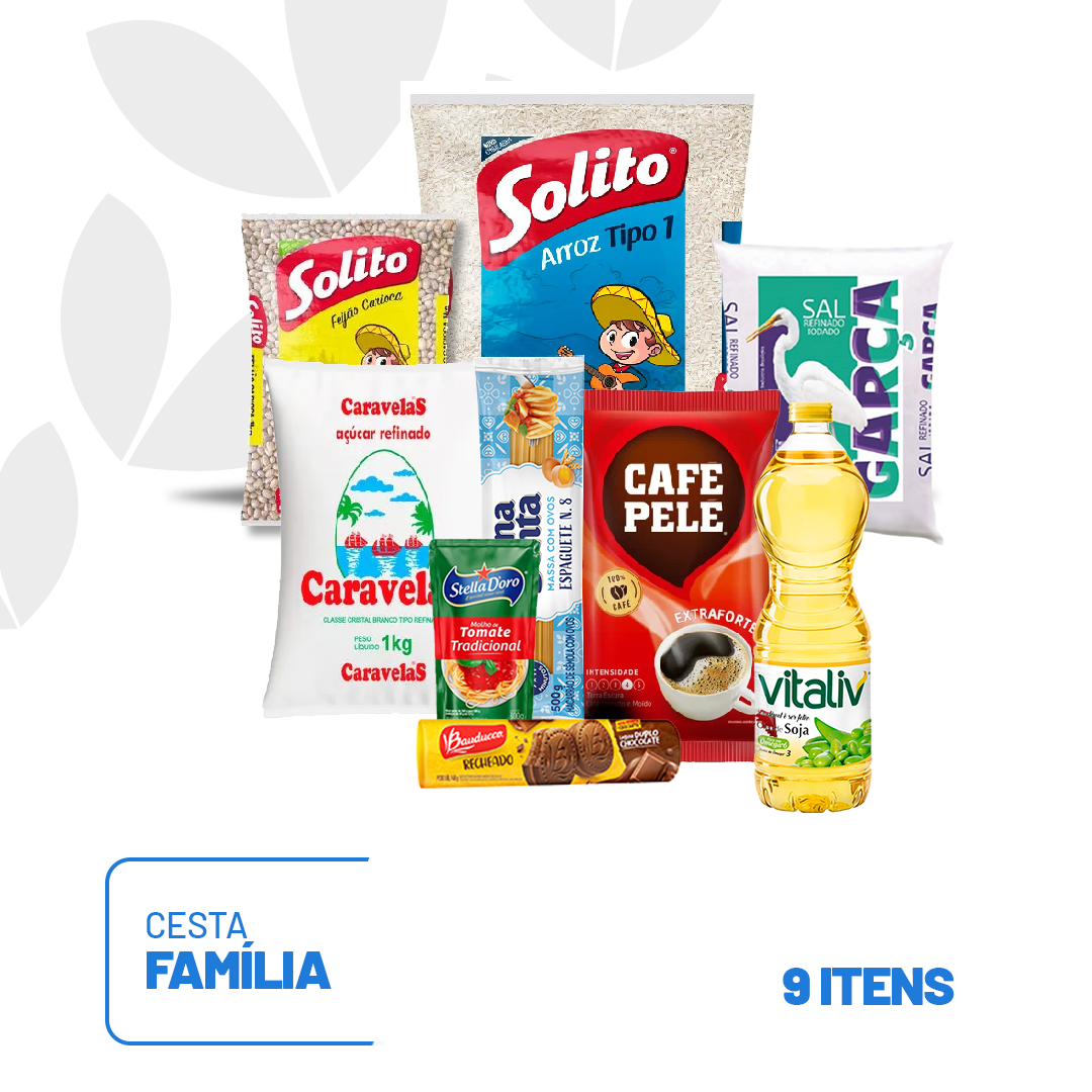 Desenvolvida especialmente para doações e ações sociais, a Cesta Família é uma forma solidária de levar alimento e esperança a quem mais precisa. Com itens básicos como 5 kg de arroz, 1 kg de feijão e 500g de macarrão, ela oferece sustento com responsabilidade e carinho.