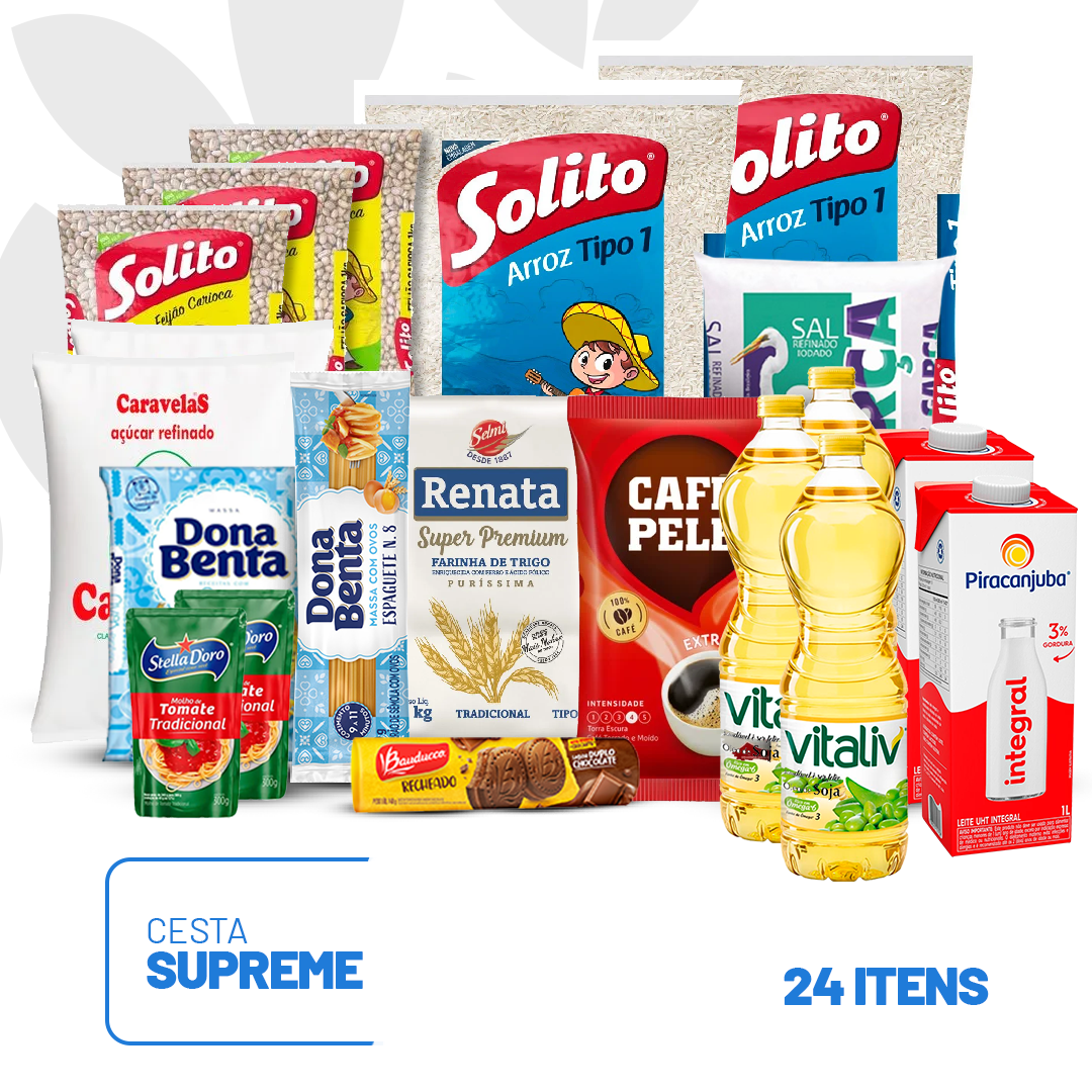 Com uma seleção equilibrada de alimentos essenciais, como 10 kg arroz, 3kg de feijão, açúcar, achocolatado e biscoitos, além de leite integral e café, a Cesta Supreme oferece uma refeição completa e nutritiva. Perfeita para cuidar da sua família ou valorizar seus colaboradores.